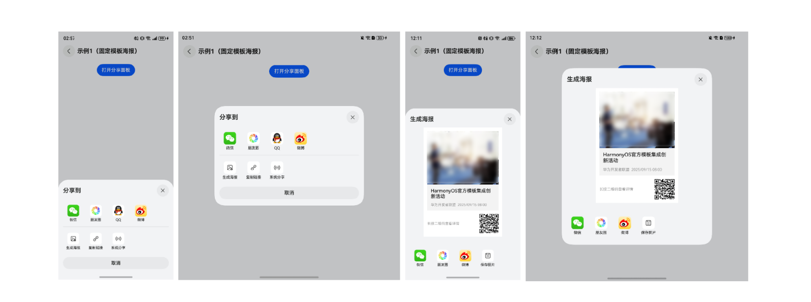 本组件支持分享到微信好友、朋友圈、QQ、微博等,支持碰一碰分享、生成海报、系统分享等功能。