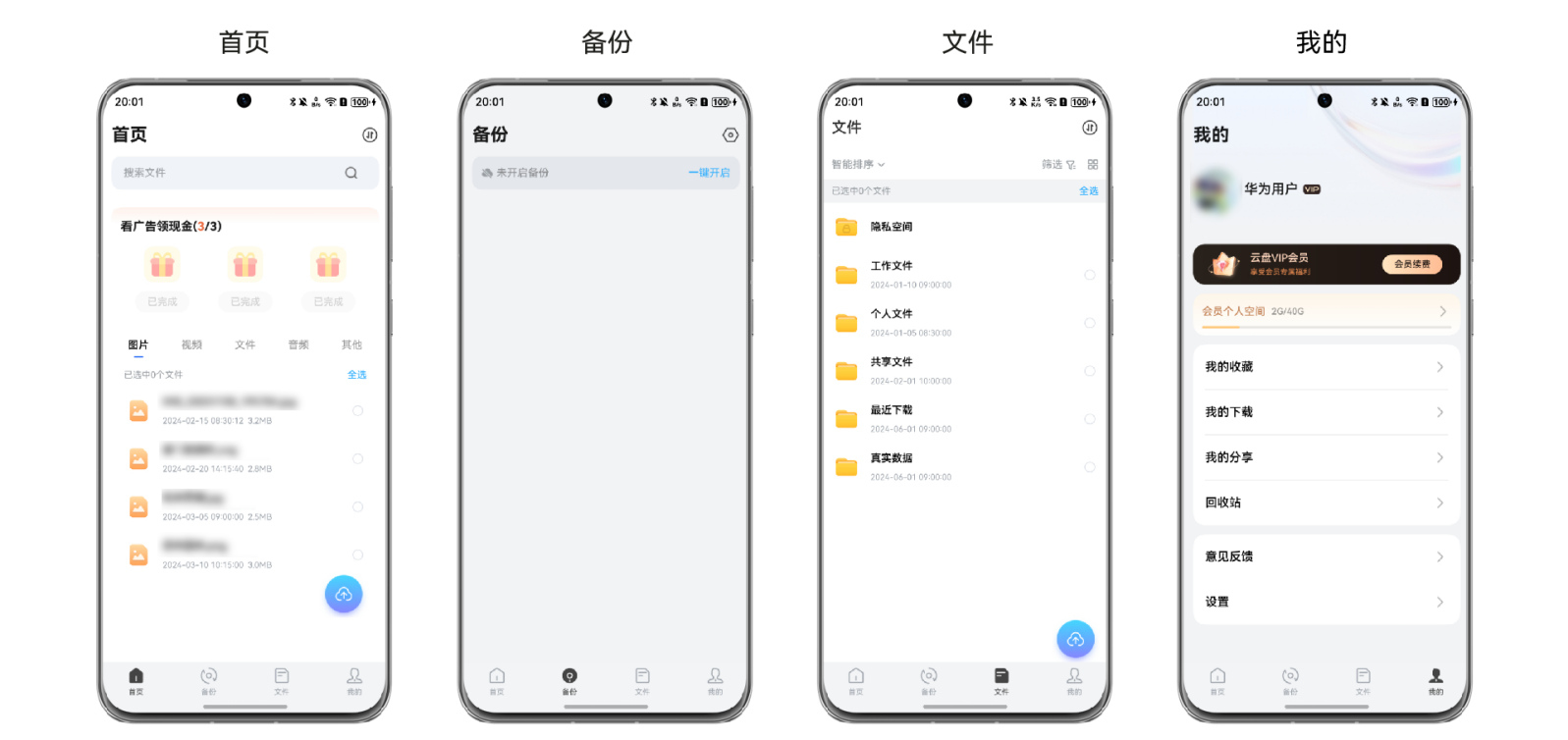 本模板为网盘类应用提供了常用功能的开发样例,模板主要分首页、备份、文件管理和个人中心四大模块。本模板已集成华为账号、云存储、推送、支付等服务,支持深色模式、适老化、无障碍等特性,提供完整的网盘应用解决方案,只需做少量配置和定制即可快速实现网盘应用的核心功能。