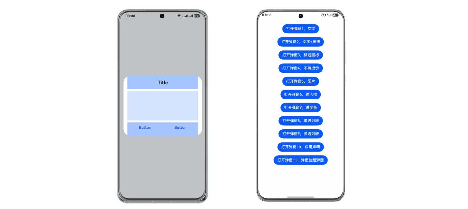 | 即时反馈组件UIToast | 用于在屏幕中显示一个操作的轻量级即时反馈,支持显示图片+文字,刷新弹窗内容和修改弹窗样式。 | |