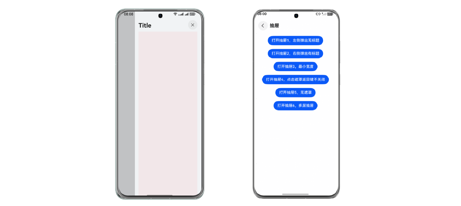 UIDrawer用于在屏幕侧边弹出一个面板,支持从左右两侧弹出。