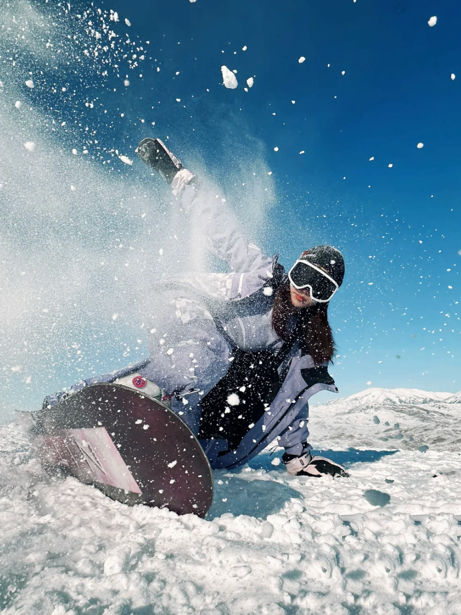 雪景美丽得就像村上春树笔下的“世界尽头与冷酷仙境”,板上的人已蓄势待发,情绪BGM已响起,不料下一秒就摔出了镜头外,有句话说的好“滑雪就像人生,今天依然是摔得稀巴烂的一天”。
