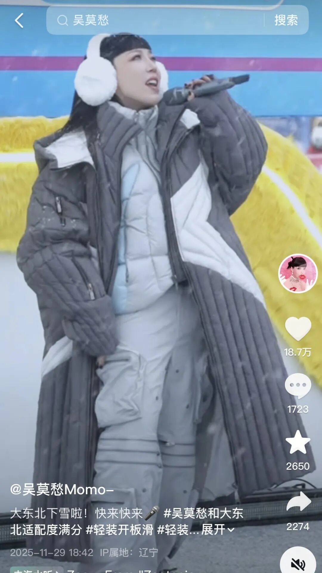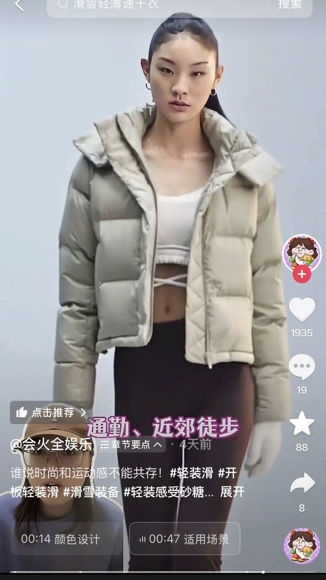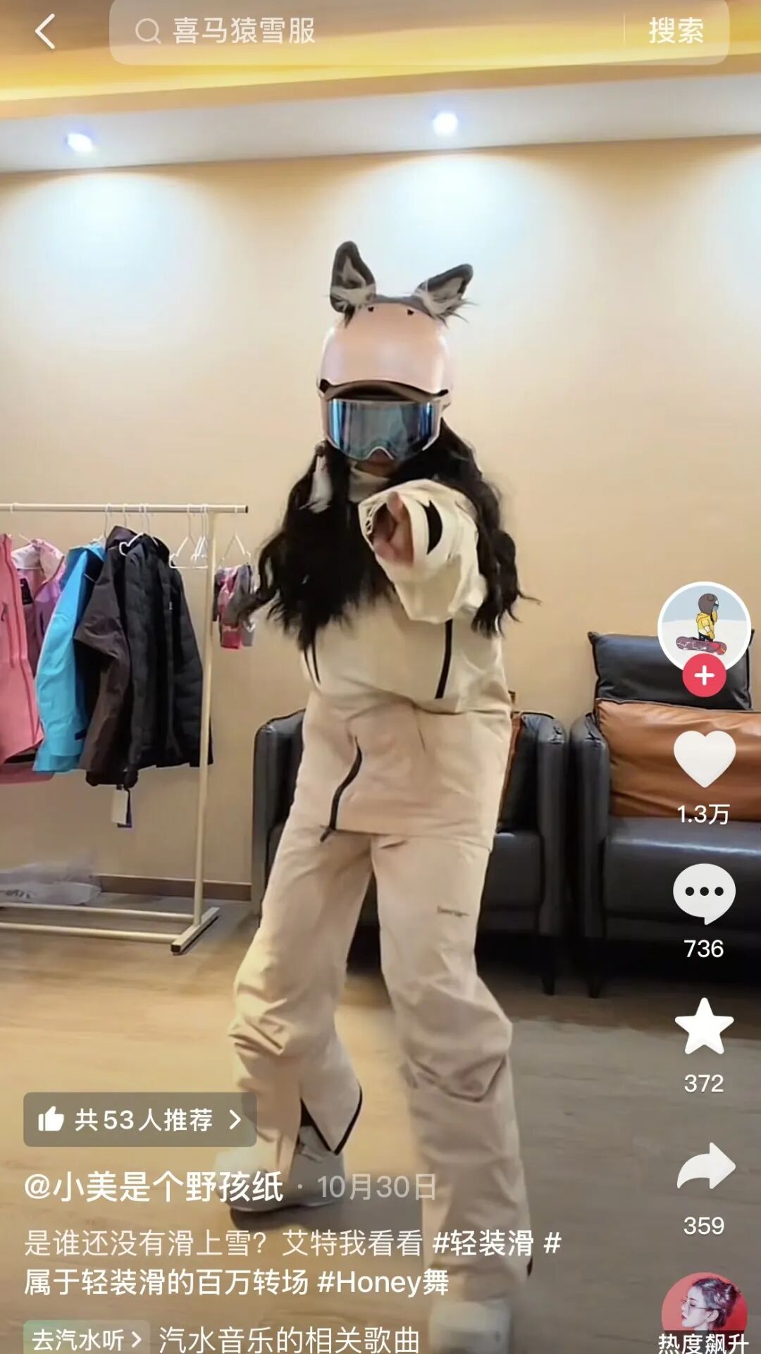 在抖音上,滑雪已从一项专业运动升级为一种生活方式与时尚表达,即让大家卸下传统滑雪繁重的装备与竞技压力,选择饱和度低、设计简约的轻量化雪服装备,实现从城市到雪场的无缝衔接,回归滑雪最本真的快乐,这也是“轻装滑”的核心本质。