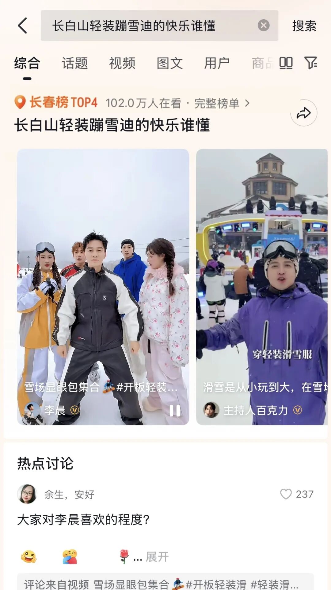 在大众参与层面,抖音同步打造系列创意话题,如#开板轻装滑、#用小雪打开轻装滑、#一年一度滑雪整活大赛等,内容覆盖雪场体验、穿搭技巧与亲子互动,吸引个人、好友、家庭多元参与,让滑雪知识轻量化传播,氛围感持续升温。