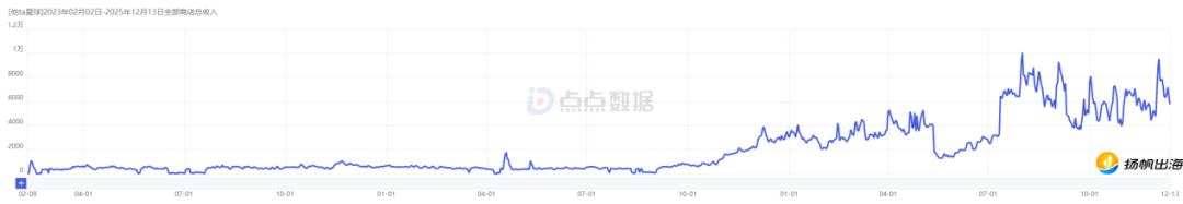 他TA星球自上线以来全商店总收入,图源:点点数据