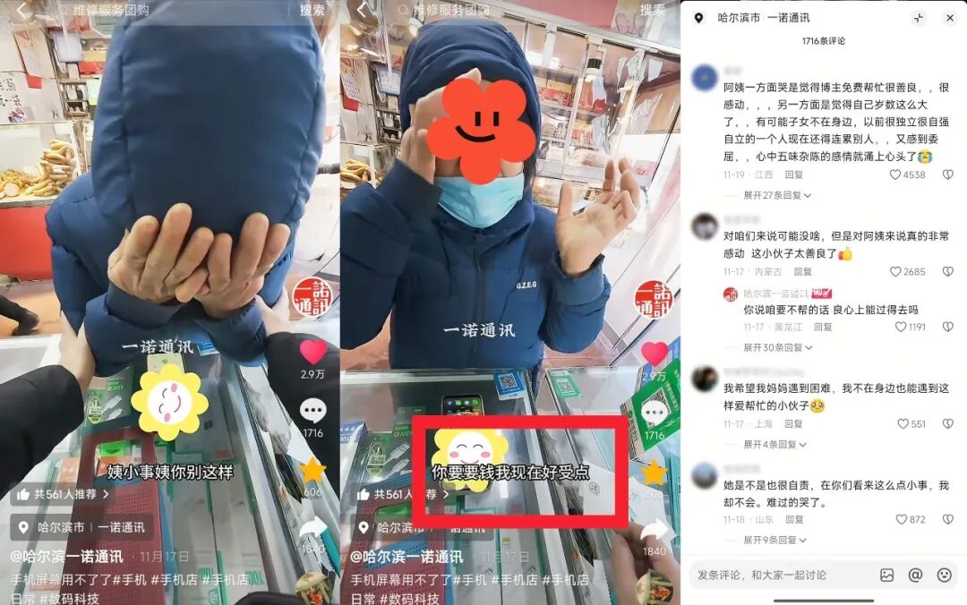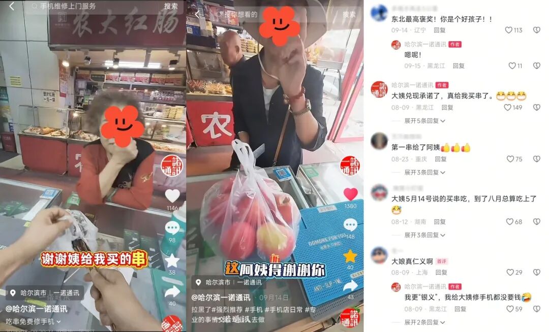 最近,抖音上一位名叫@哈尔滨一诺通讯 的手机维修店店主意外走红。