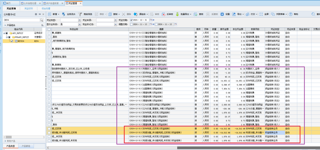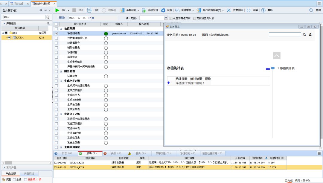 3.3.1、年结当天(12月31日)的数据导入、公共信息处理、各大交易所中心清算等操作与其他时间相同。主要注意在执行资产估值核算时需勾选“损益结转业务”,31号会多比平时增加一笔权益结转凭证。