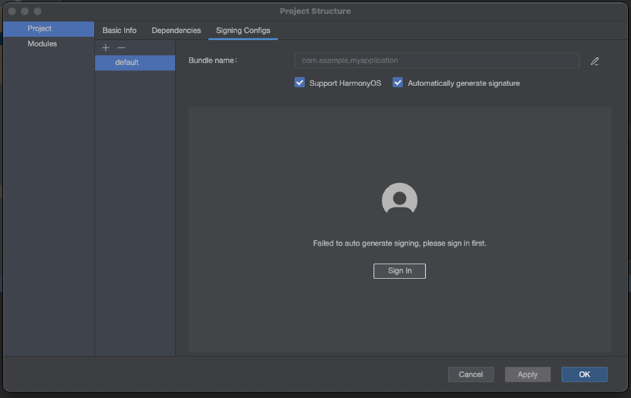 使用 DevEco Studio 运行 MyRNApplication 工程。如果运行按钮灰色不可用,需要先执行file->sync and refresh project。