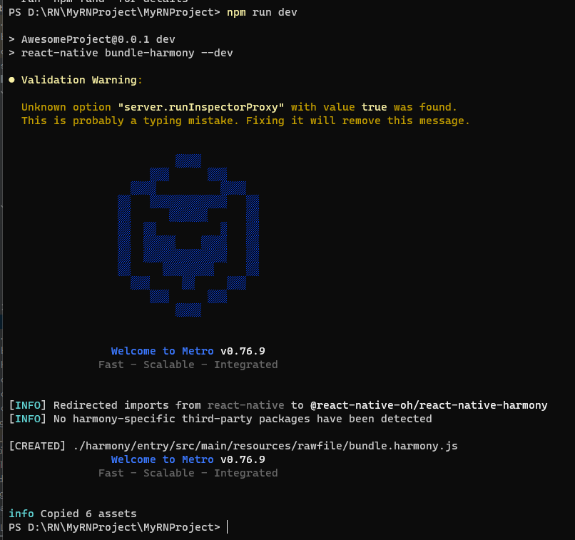 这个命令行工具不需要安装,可以直接用 node 自带的npx命令来创建,目前 ReactNative for OpenHarmony 仅支持 0.72.5 版本的 ReactNative。