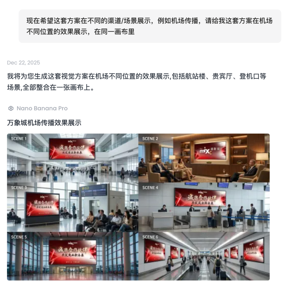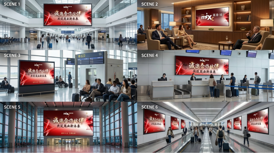 设计师不需要再改画面,而是开始思考它会被放在哪里、以什么方式被看到。机场、商场、走廊、候机区,不同位置对同一张视觉的要求并不相同,但本质上仍然是对同一套设计的延展,而不是新的创作任务。