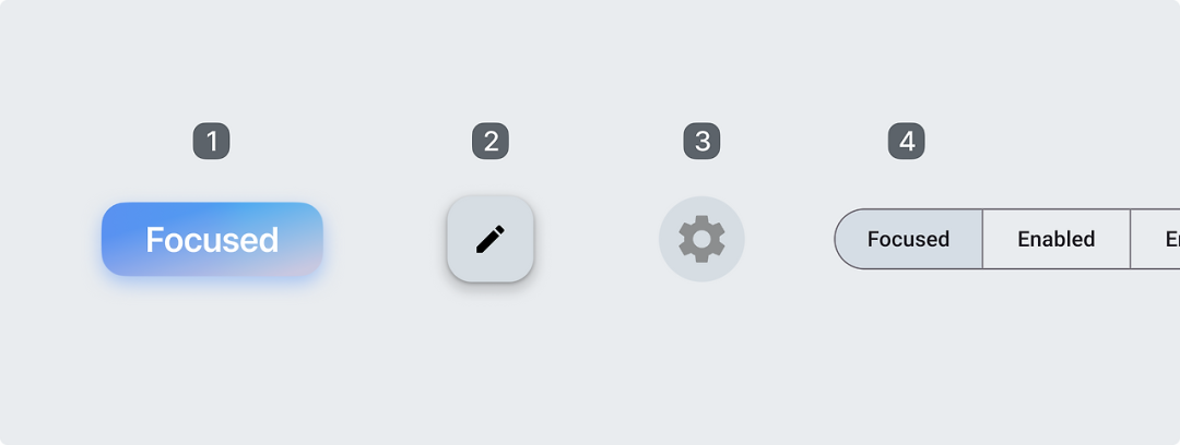 聚焦状态表示用户已使用键盘或语音输入高亮显示(选中)某个元素。聚焦状态适用于所有交互组件。