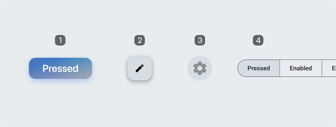 像按钮、浮动操作按钮(FAB)、图标按钮和分段按钮这类组件,都支持悬停状态。而且悬停状态还会被操作类、选择类和输入类组件继承使用。