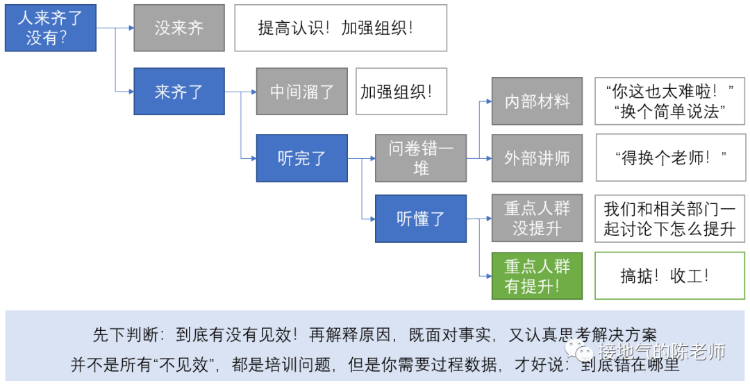 理论上,只要培训能对新员工、中低水平的员工起到提升作用,那已经是大功一件了。至于高水平的员工,到底是培训让他做得好还是他自己有本事,反正横竖人家业绩产出都很高,因此完全没必要纠结。