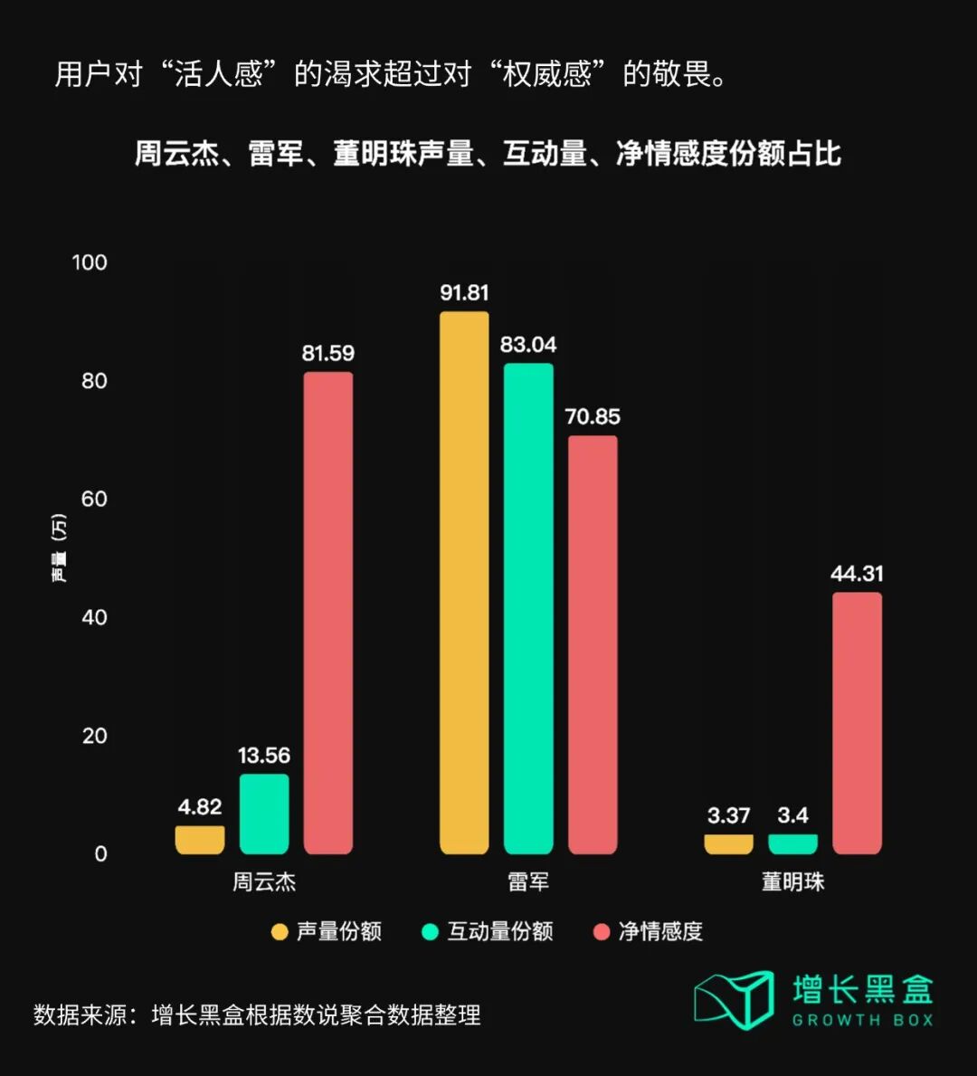 让所有企业家都成为“雷军”很难——不仅在个人魅力层面,拥有极强的个人标签、正面的路人缘、和长期积累的用户好感度,同时在其所代表的品牌层面,打造超高的产品力,以及建设高渗透的品牌力。