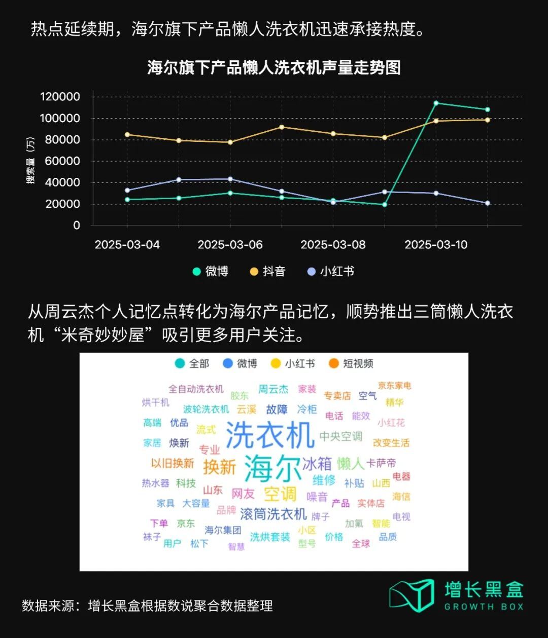 例如,微博热搜引爆后,小红书出现「职场人表情包」二创内容,抖音也衍生出「冰箱梗」短视频,微信指数暴涨700倍,大幅提升了用户的参与度,更进一步带动深度内容的挖掘和商业潜能的爆发——用户自发分享“我家海尔冰箱用了15年”,海尔京东旗舰店访客量激增300%。