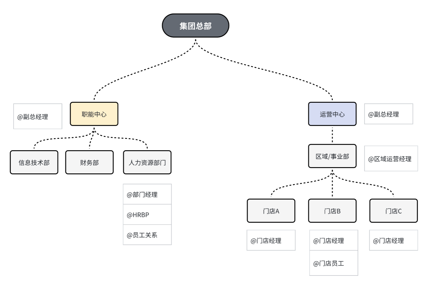 以某零售企业为例,它的企业组织架构图如下图: