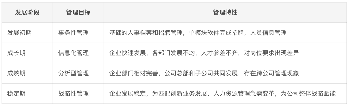不同发展阶段、不同规模、不同行业的企业对人事管理的诉求是不同的,因此对人事系统数字化的要求也是不一样的。