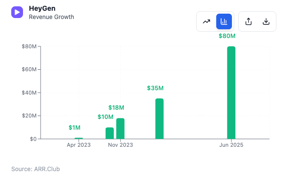 在那个视频爆火之前,HeyGen 的ARR(年度经常性收入)已经悄悄突破了千万美金。当大多数 AI 创业公司还在烧着投资人的钱、纠结模型参数时,HeyGen 已经跑通了一套极其恐怖的“自我造血”机制。