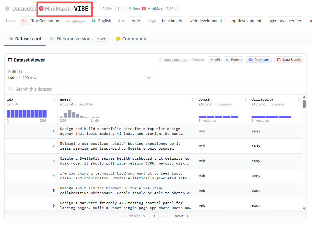 VIBE:https://huggingface.co/datasets/MiniMaxAI/VIBE