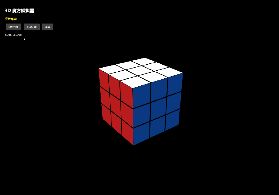 提示词:Create a single HTML file containing a fully functional 3D Rubik’s Cube simulation using Three.js (via CDN). The cube must be able to automatically solve itself. 译文:创建一个HTML文件,其中使用Three.js(通过CDN方式引入)来实现一个功能完备的3D魔方模拟程序。该魔方必须能够自动完成自己的“解谜”过程。