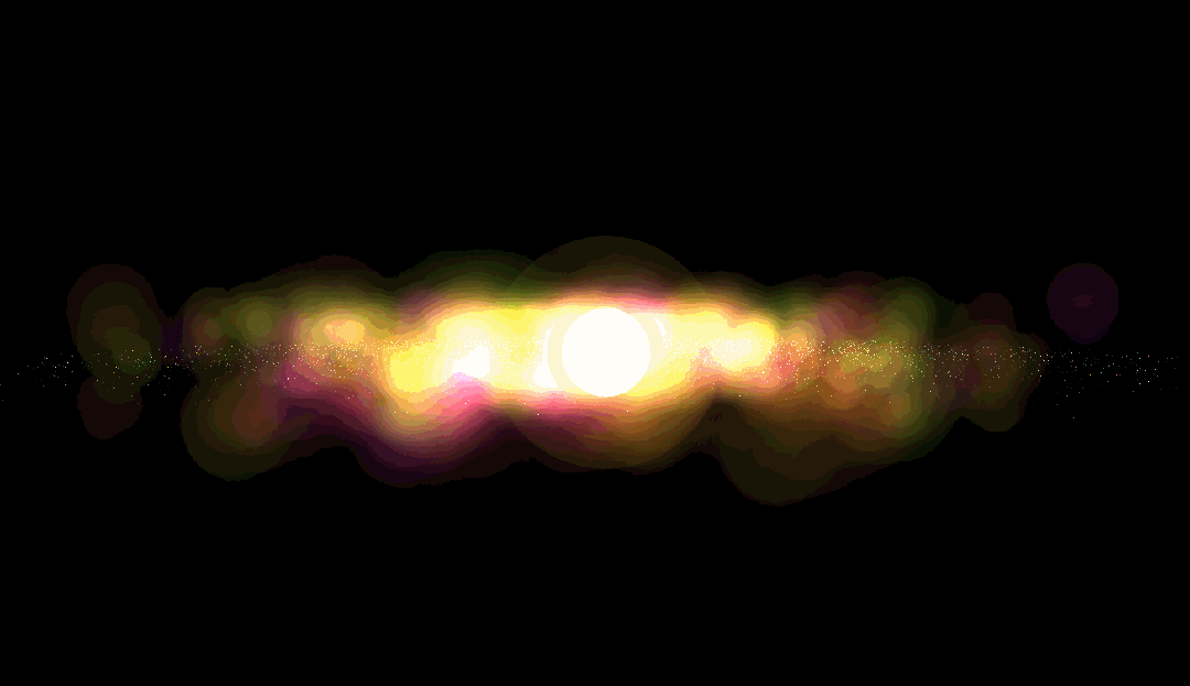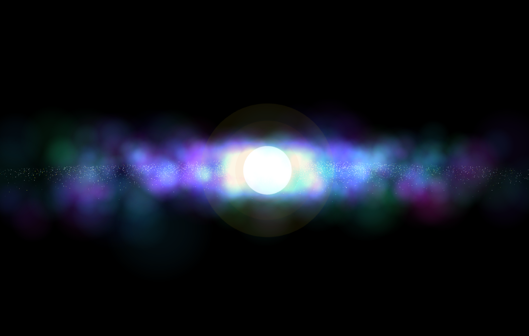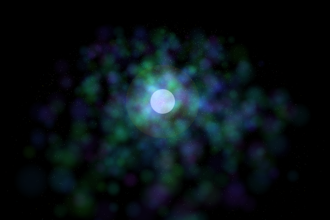 Create a 3D particle galaxy with swirling nebulas, dynamic lighting.