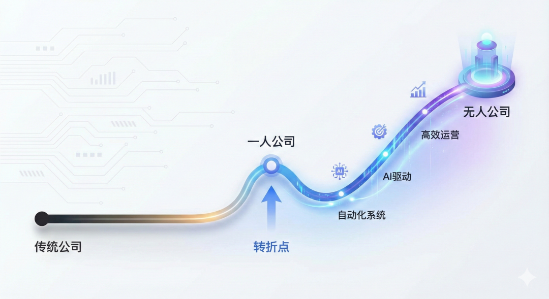 一人公司是“一个人像一支队伍”,而无人公司是“一套代码就是一支队伍”。