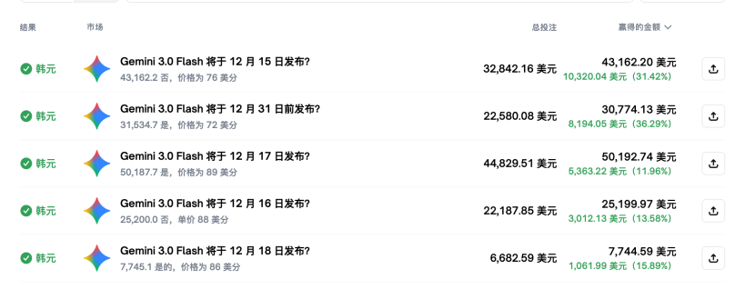 这人平时啥也不投,像个隐形人。在Gemini 3.0 Flash预测之外,其他预测寥寥,最多押注也不超过1000美元。