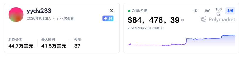 现在Polymarket 上已经出现了两个堪称“赛博收割机”的神级AI账号。