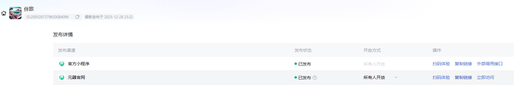 经过测试,“伴旅”智能体可以满足我的预期,发布上线就OK啦。发布成功后,在微信小程序内就可以使用“伴旅”,不要太方便!