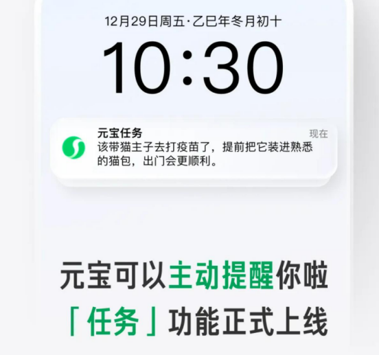 用户刘宇一位养猫铲屎官,在微信里添加元宝为好友,设置“每月15日12点提醒我给咪咪做外驱”,到点后微信会直接推送通知,点击即可跳转查看驱虫步骤——这种与社交生态的深度绑定,让提醒不再是“额外App的打扰”,像好友消息一样自然。