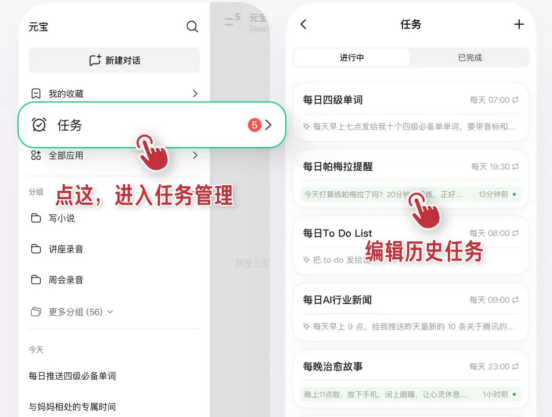 没看到没关系,我用一句话总结就是:腾讯元宝可以设置定时提醒了。
