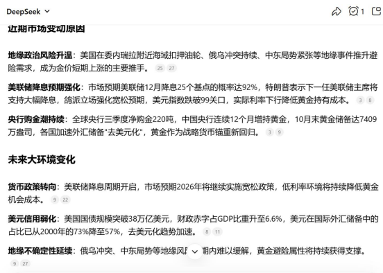 全网搜索,总结最新的黄金价格资讯与近期市场变动原因解读,以及未来大环境变化,并根据前面的总结预判近期金价变化并说明理由