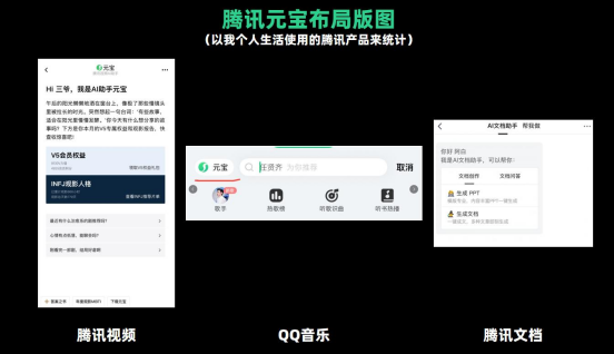 目前我们已经看到了一个清晰的版图:腾讯元宝的入口已经从腾讯元宝APP扩展到了:元宝微信好友,腾讯视频,腾讯音乐,腾讯文档