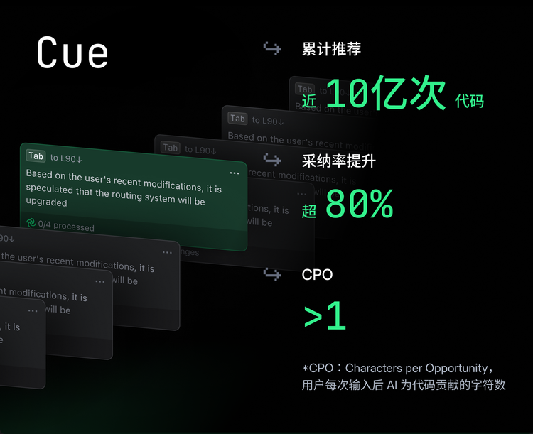 这种质变来自体验的无感化。GitHub Copilot 早期靠插件形态做到了“润物细无声”,TRAE 的 Cue (代码补全)也落在同一个点上:超过 50% 的用户每天主动使用,推荐采纳率提升超过 80%。当 AI 的介入从“演示功能”变成了“肌肉记忆”,它就不再是外挂,而是开发者身体的一部分。