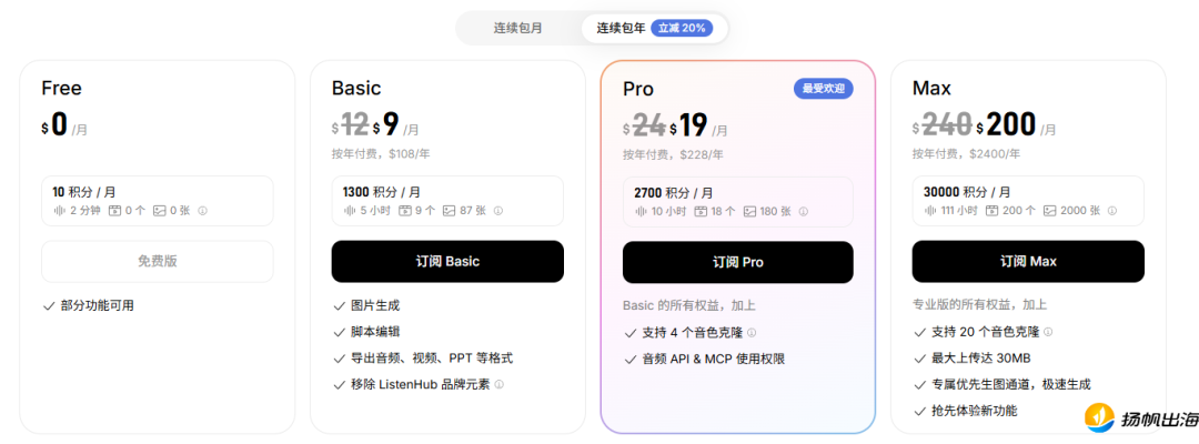 (ListenHub年订阅费用)