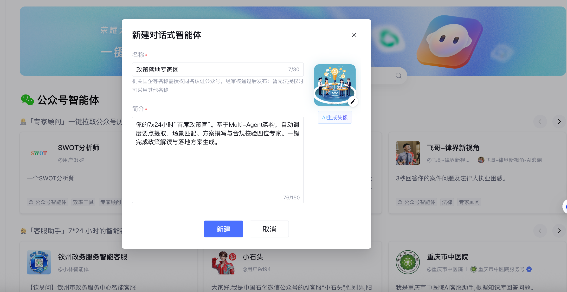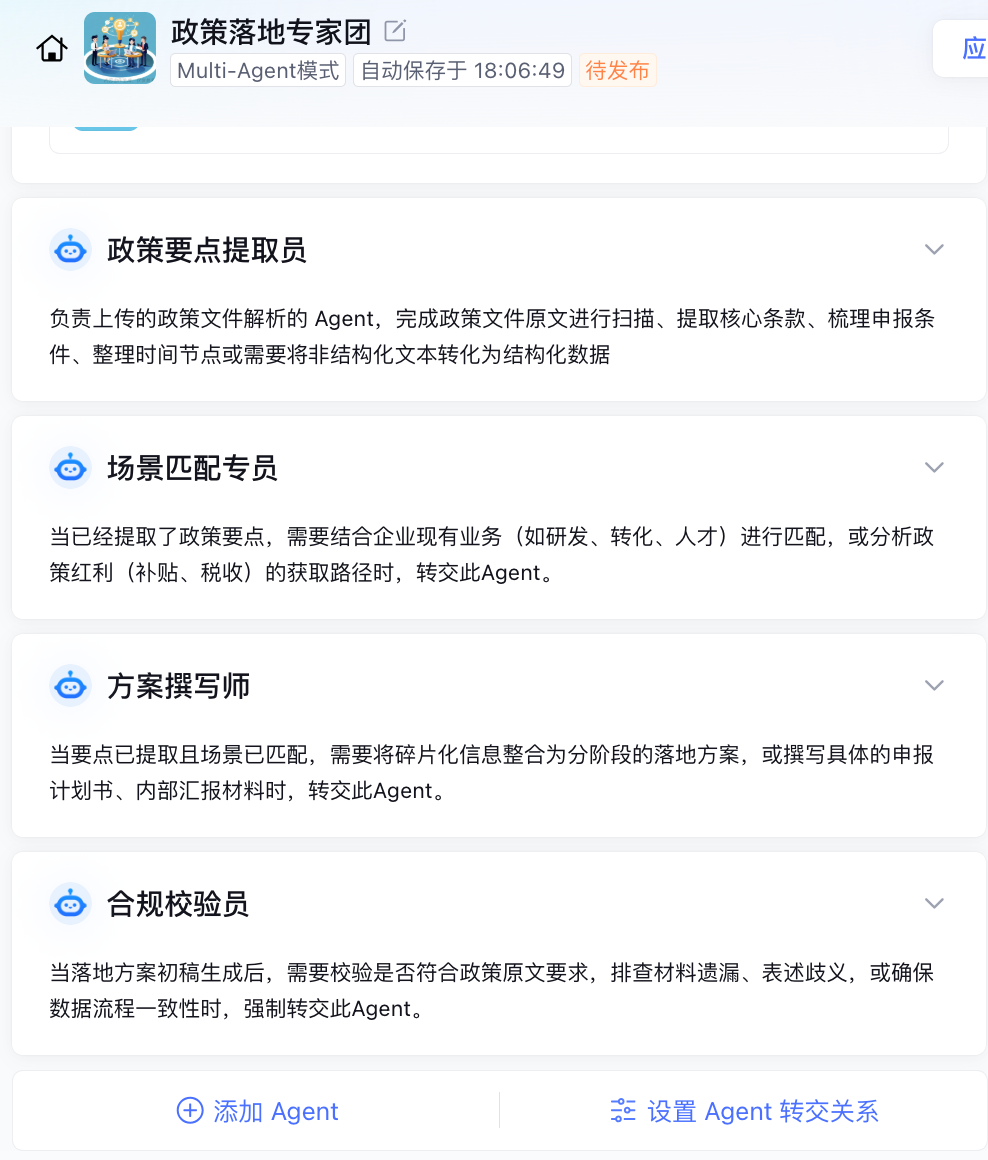 前面我们详细讲了主智能体配置流程,大家可以用同样的方法,快速创建其他专家智能体。