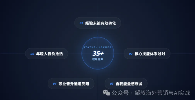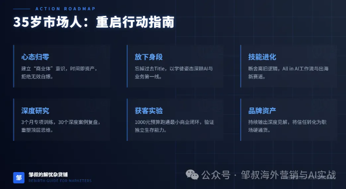 35岁市场人的职场焦虑与出路在哪里?本文深入剖析了市场老兵面临的五大隐形困境,并提供了四个实战型转型方向:从增长操盘手到出海营销专家,从知识提炼者到AI+市场的超级个体。作者结合自身从地产总监到出海专家的转型经历,为中年市场人量身定制了一套'职场重启系统',教你如何将经验转化为核心竞争力,在存量时代找到增量赛道。