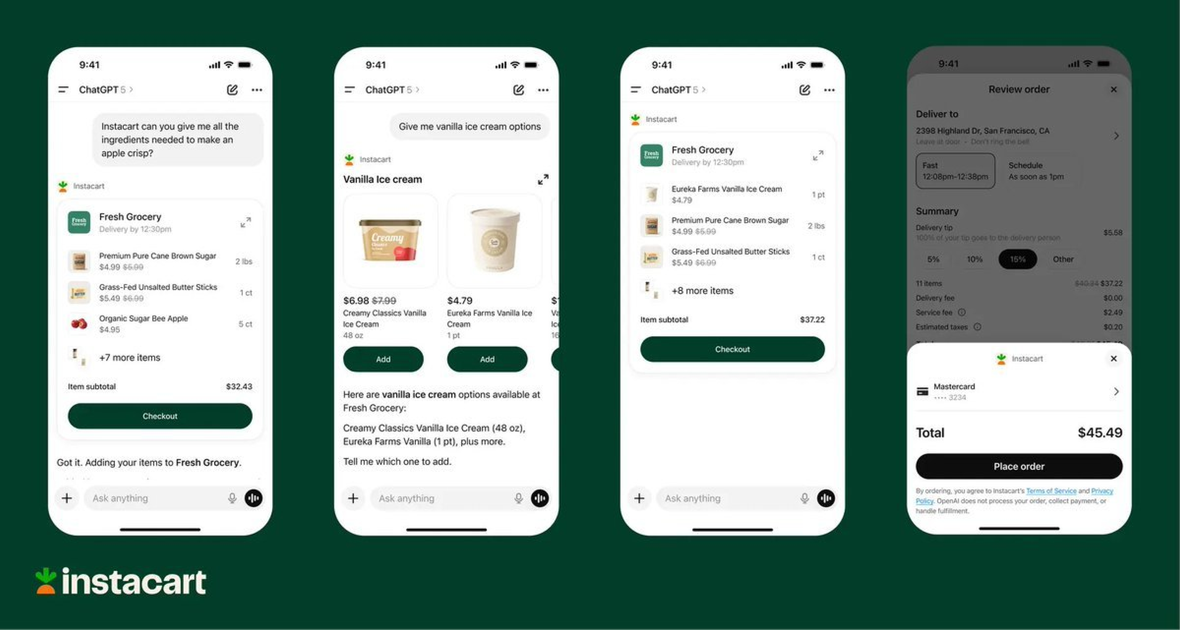 案例 2 OpenAI 和 Instacart 携手把“买菜”塞进了 ChatGPT,用户可以在聊天里一边聊菜谱、一边生成购物清单,最后直接结账,全程不用跳转 App: