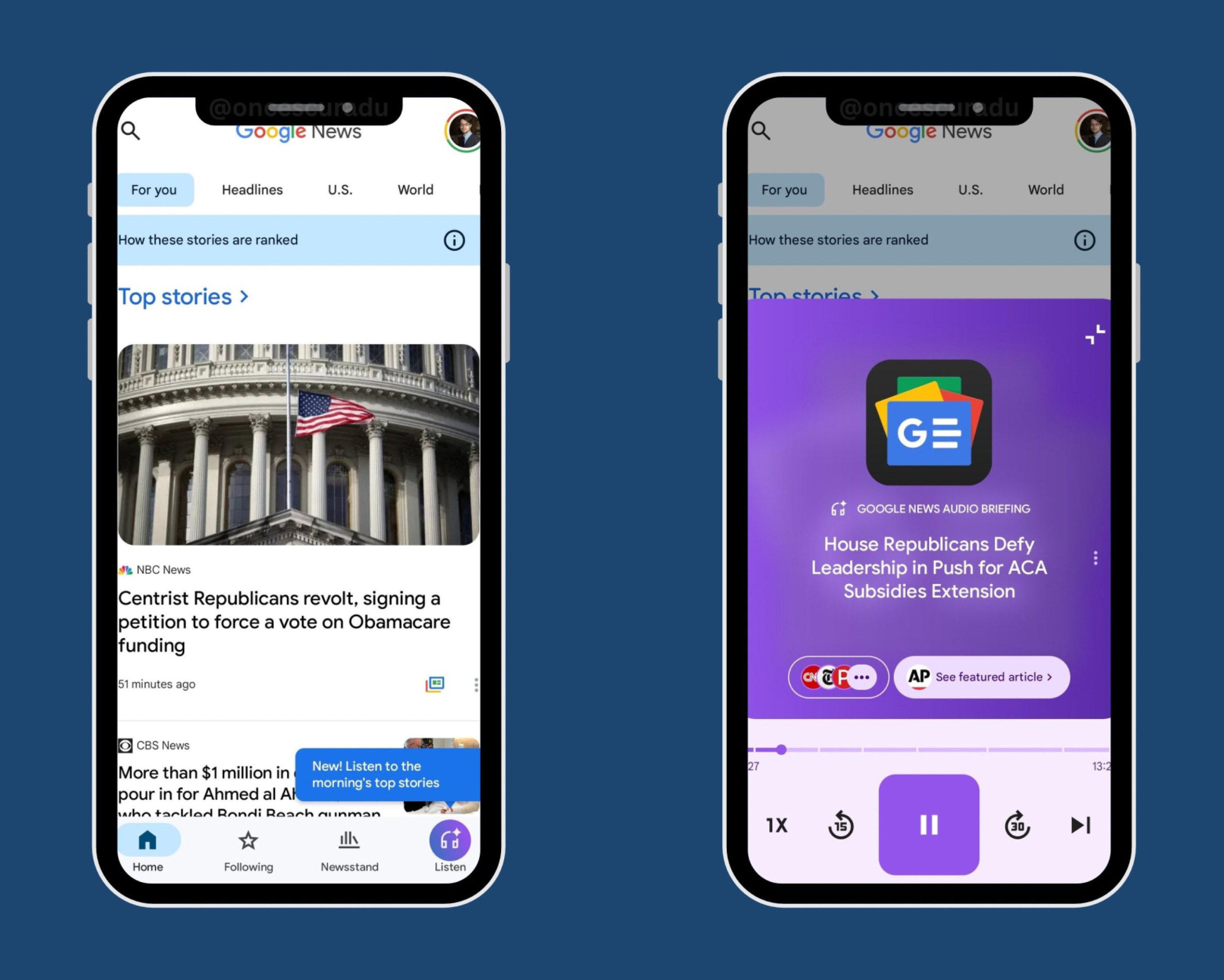 案例 5 Google 在 Android 版 Google News 中加入 AI 播客功能,将新闻自动转化为可收听内容,扩展了新闻消费的场景(如通勤、碎片时间):
