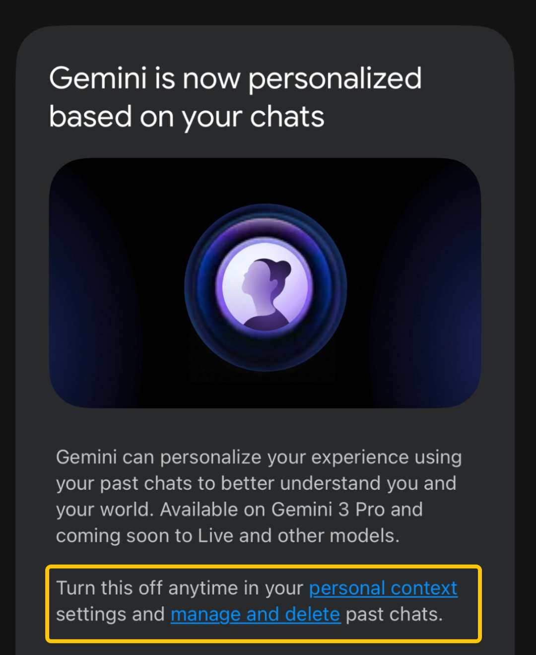 案例 2 Gemini 新增 “使用你的历史对话作为上下文” 的功能,从而实现更连续、更具记忆感的多轮对话体验: