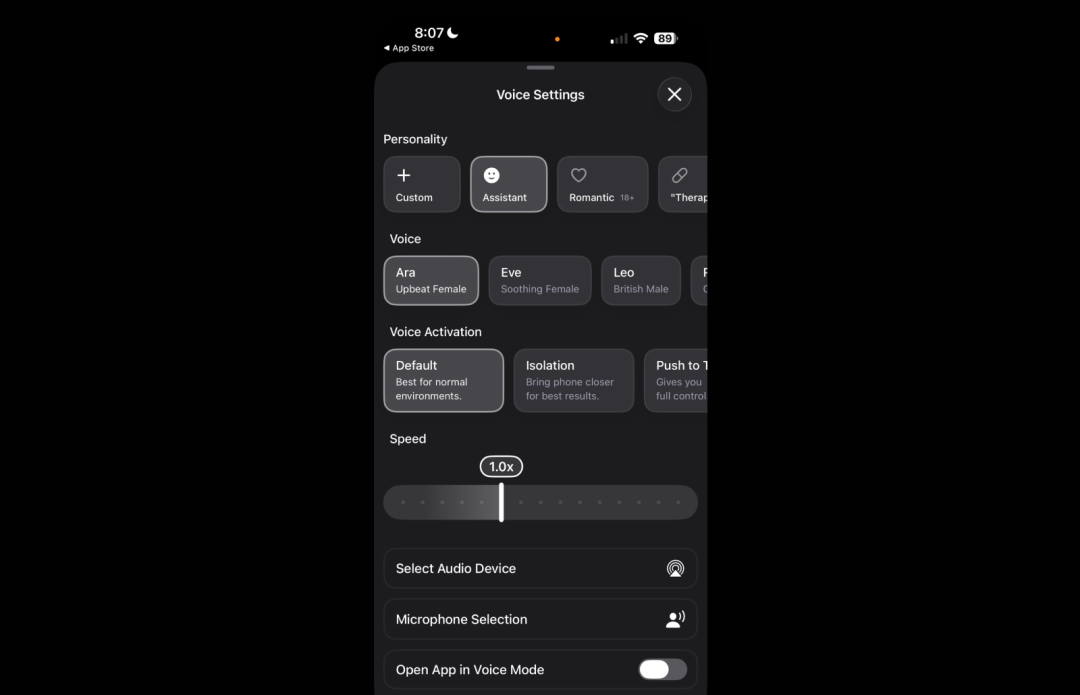 案例 6 Grok iOS 版新增多种语音唤醒模式(默认、隔离、按住说话),提升在不同环境下提升语音交互的可控性,打磨“随时可用但不打扰”的语音入口,为 AI 助手向高频、低负担使用场景渗透铺路: