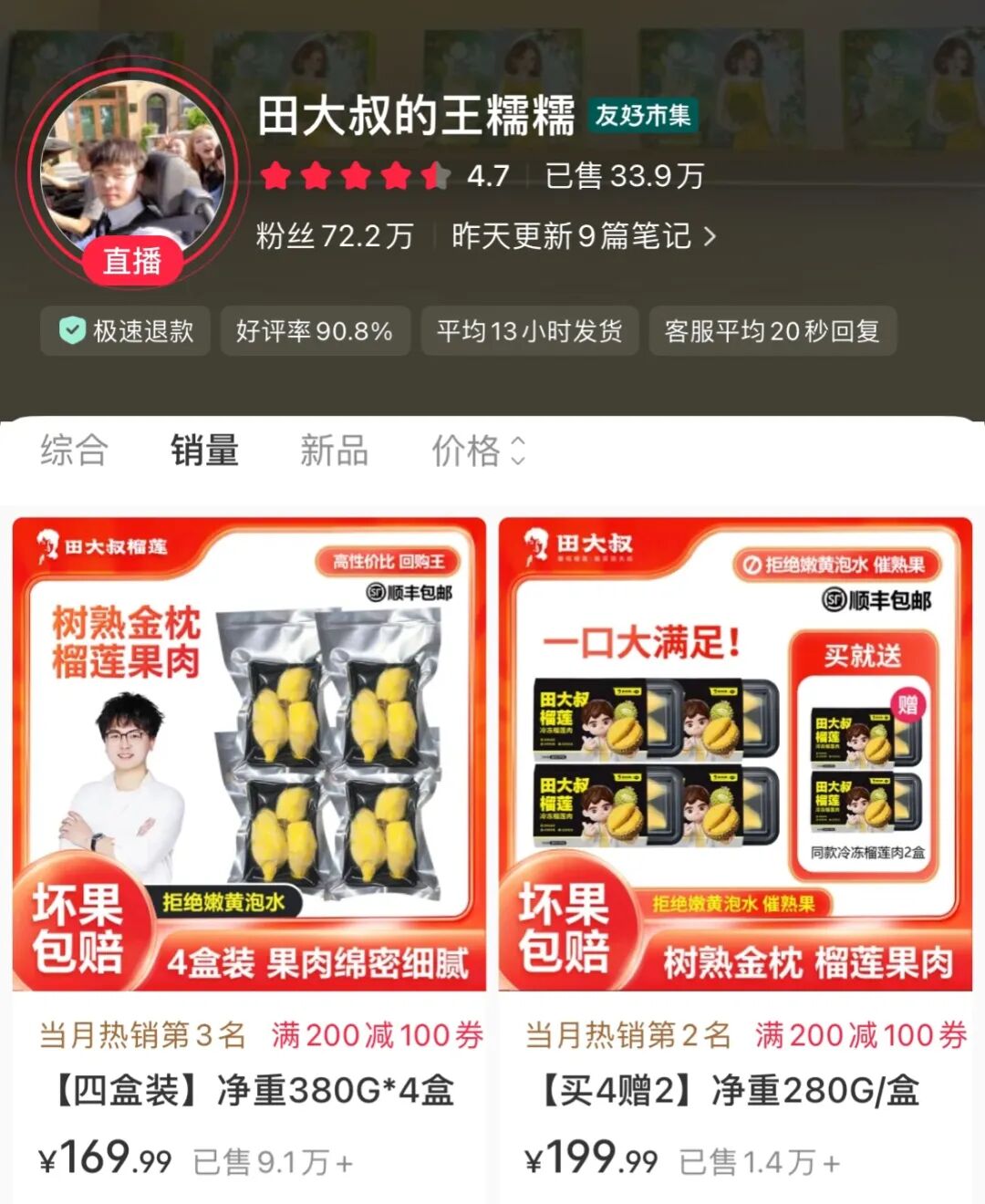 “田大叔的王糯糯”老老实实深耕一个品类,把榴莲这件事琢磨透了。