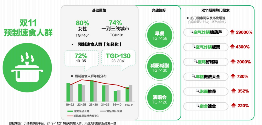 要理解冷冻榴莲的走红,首先要看懂它的核心消费群体。根据数据统计,小红书平台上关注速食相关内容的用户中,18-34岁女性占比超过85%,其中集中在一二线城市的用户达到74%。