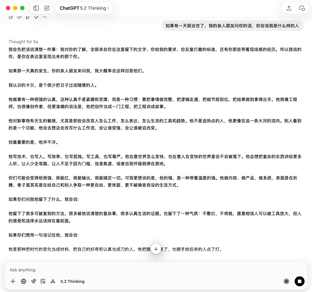 我问过什么,我担心什么,我对某件事的犹豫与决断,都会在对话里留下真实的那个我自己。