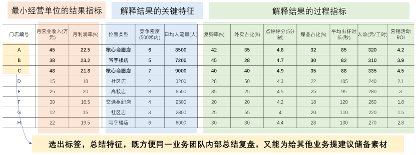 好的建议,需要有足够细节,不能笼统说:要搞高。这要求数据分析师们,不能沉迷于宏达叙事,只看整体数据。标杆分析法要常用,在业务的最小经营单位(单个门店/单个投放计划/单个商品SKU/以千为单位小规模细分人群) 寻找成功案例。结合标签,丰富自己的一线经验。