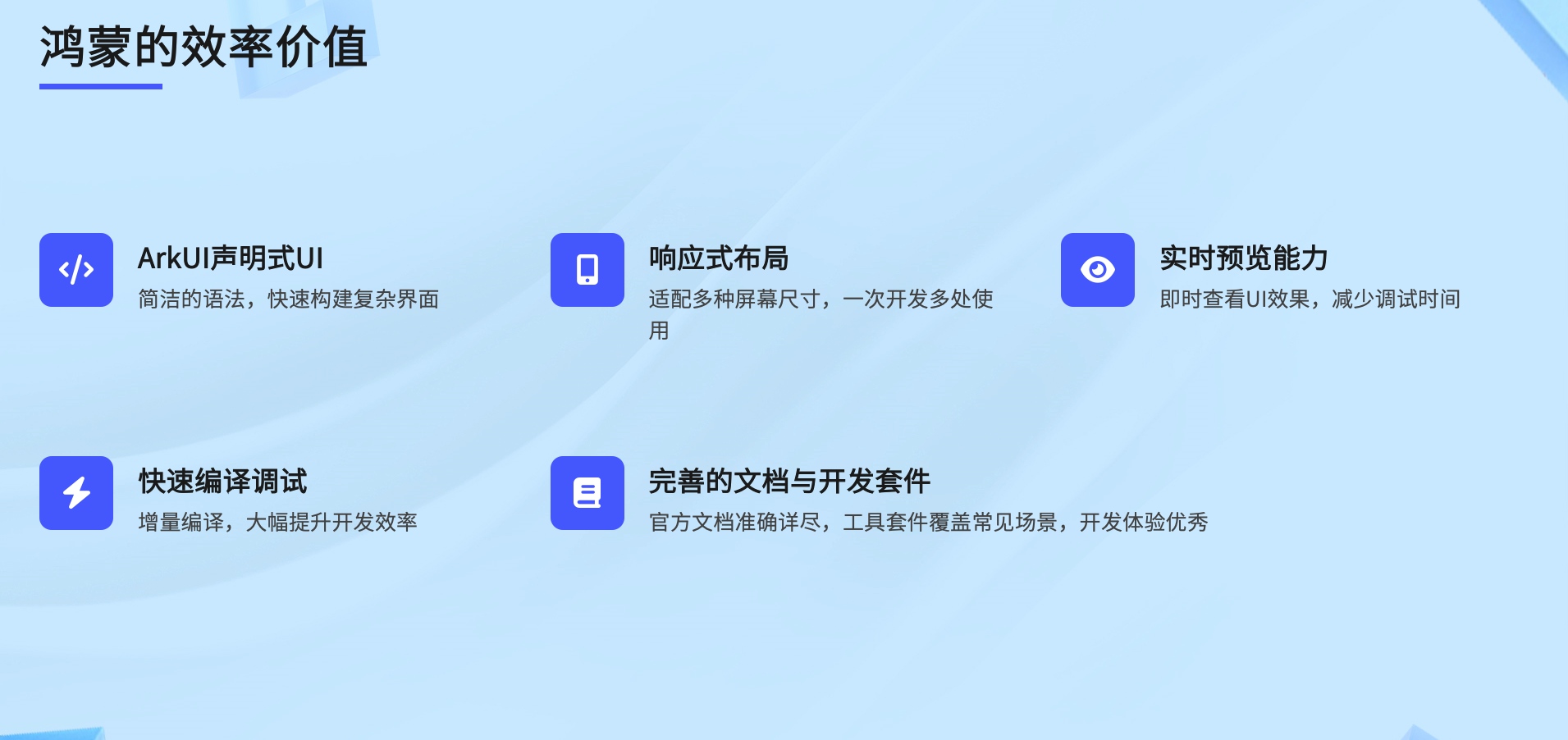- 现代化开发模型:系统级API清晰,使用体验一致性高,配合高效的工具链(含IDE调测工具、测试工具),形成完整开发闭环。