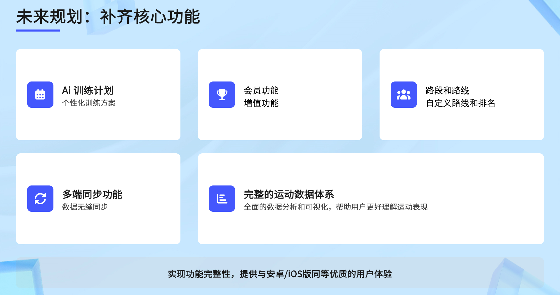 - 个性化AI训练计划、会员增值功能;