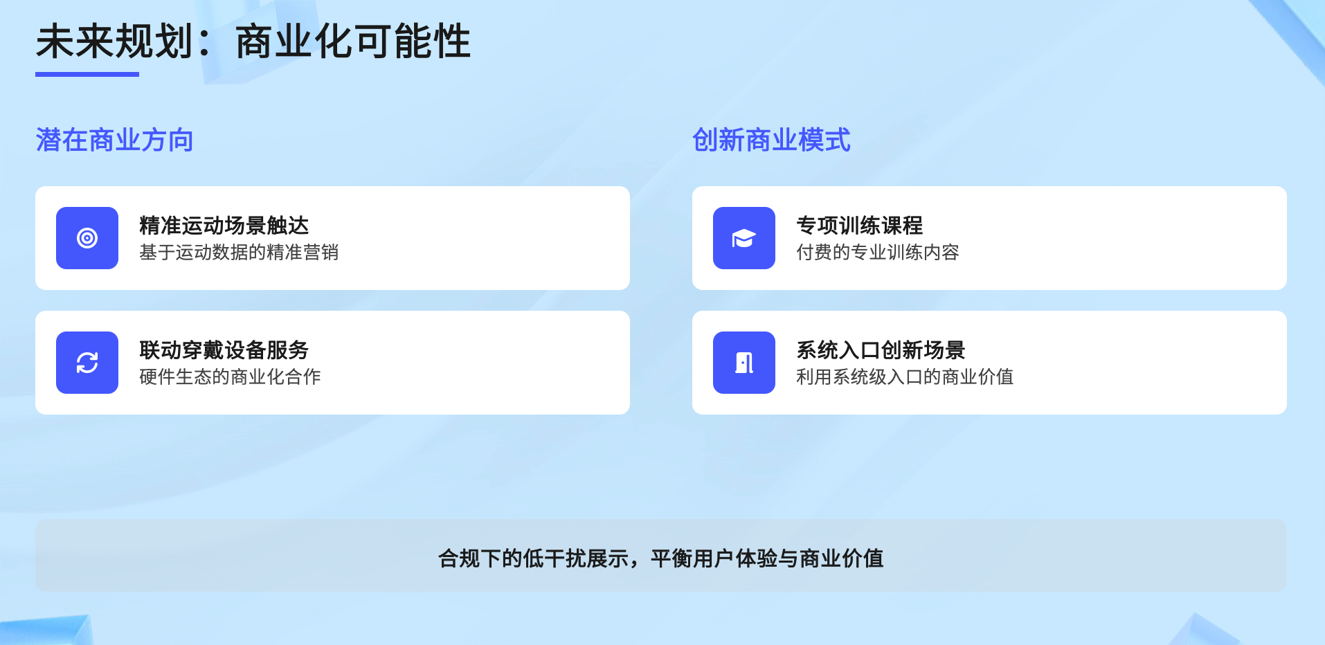 围绕运动场景与鸿蒙生态特性,探索商业化路径: