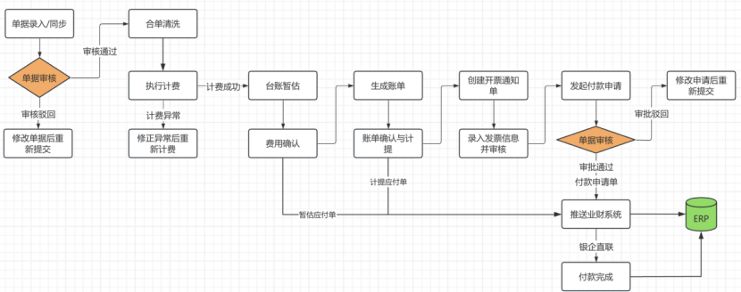 从数据进来,到清洗、合单、算费、对账、开票、付款。