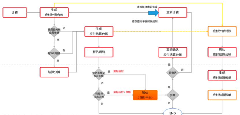 差异处理机制:针对暂估与实际金额差异,有2种处理模式:全额冲销重提与差额冲销,一般采用第一种整冲整提,无论是否有差异均全部冲销暂估并作计提。