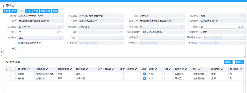 计费配置:根据合同约定创建计费规则、费率表与计费协议,关联对应的业务单据与价格数据。